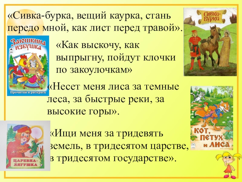«Несет меня лиса за темные леса, за быстрые реки, за высокие горы».
