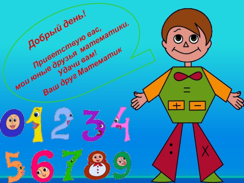 Добрый день!Приветствую вас, мои юные друзья математики. Удачи вам! Ваш друг Математик