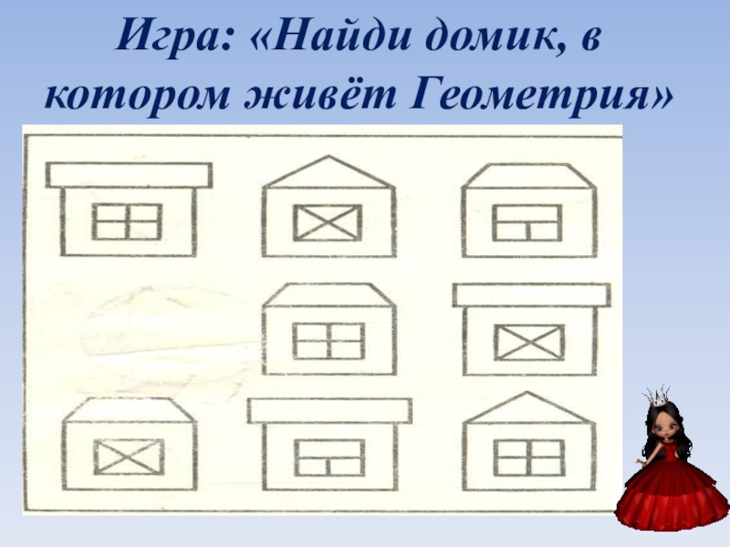 Слайд 4Игра: «Найди домик, в котором живёт Геометрия»
