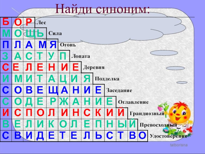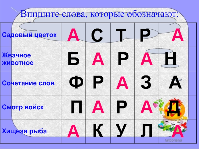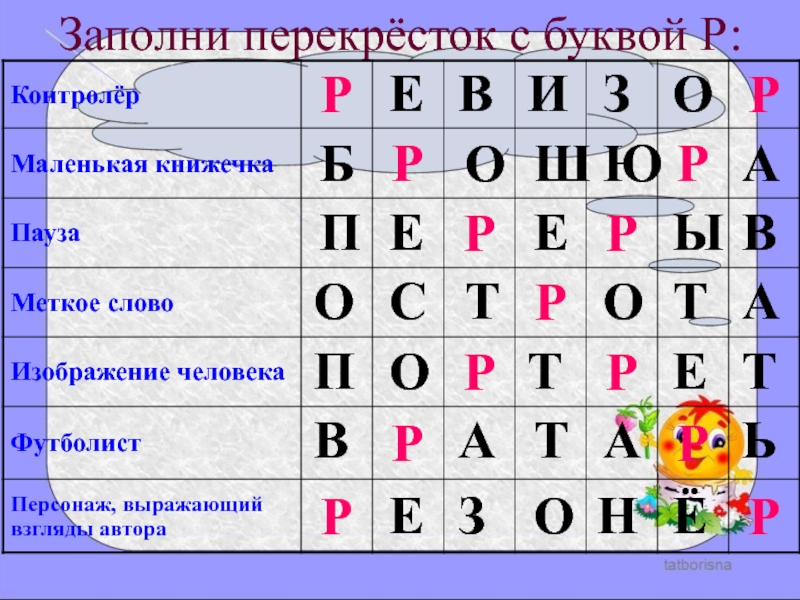Заполните пустые клетки :РЗРИСТКУЁТМЕТИКАФОИЯОНРИЛТГРКИТЕОАТСАРИКМРОБМ