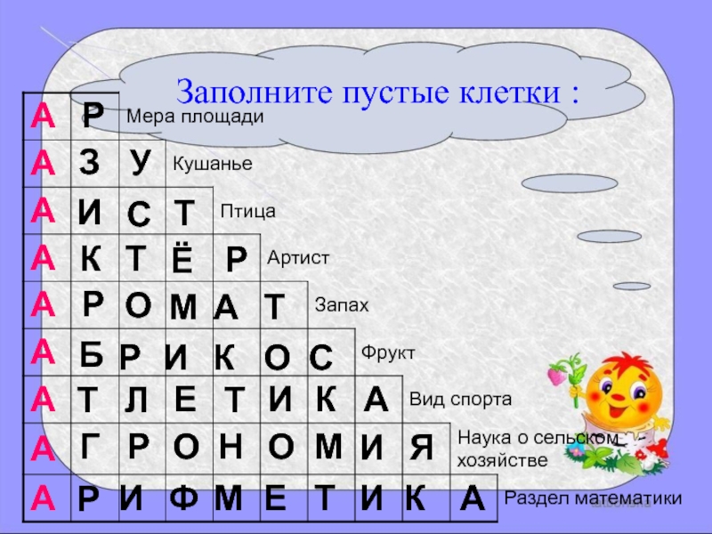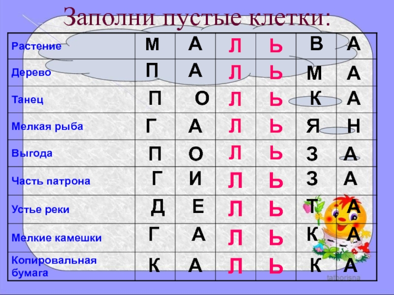Заполни пустые клетки:ГМАВАПАМАПОКААЯНПОЗАГИЗАДЕТАКАГАККАА