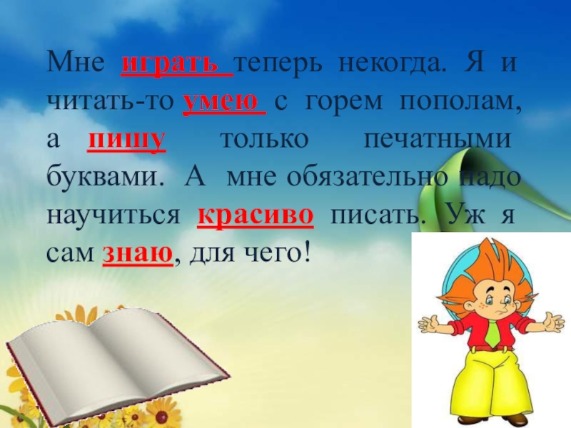 а пишу только печатными буквами. А мне обязательно надо научиться красиво писать. Уж я сам знаю, для чего!