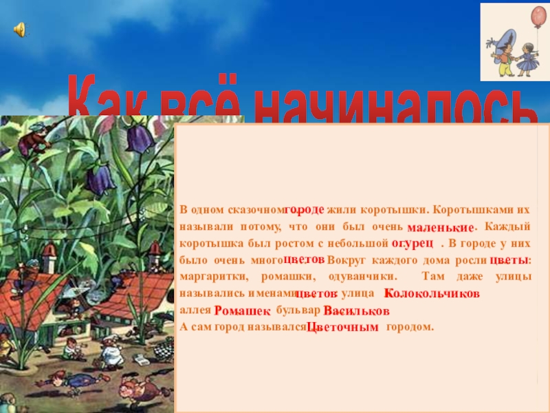 Как всё начиналосьгородемаленькиеогуреццветовцветыцветовКолокольчиковРомашекВасильковЦветочным
