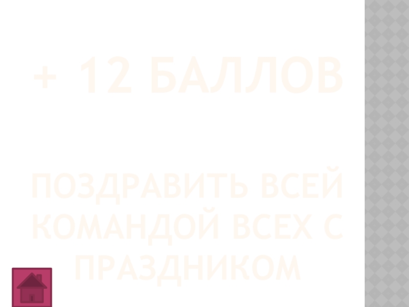 Слайд 32+ 12 баллов поздравить всей командой всех с праздником