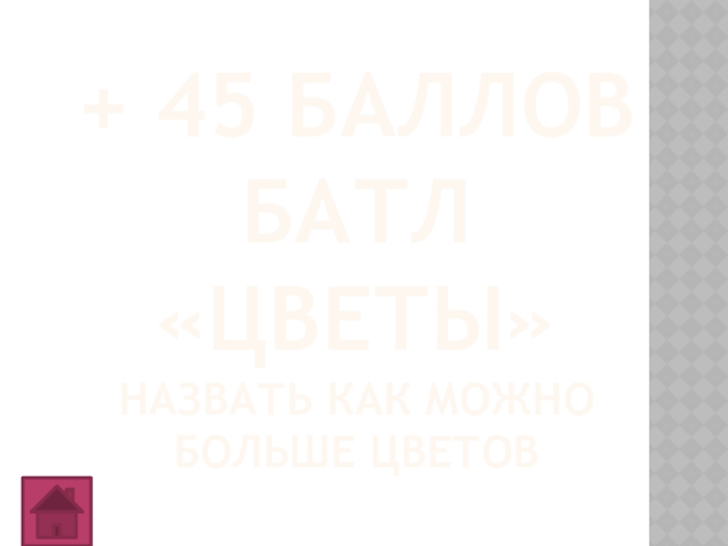 Слайд 14+ 45 баллов батл «цветы» назвать как можно больше цветов