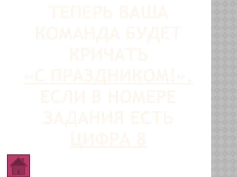 Слайд 24Теперь ваша команда будет кричать «С Праздником!», если в номере задания