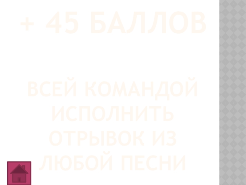 Слайд 30+ 45 баллов всей командой исполнить отрывок из любой песни