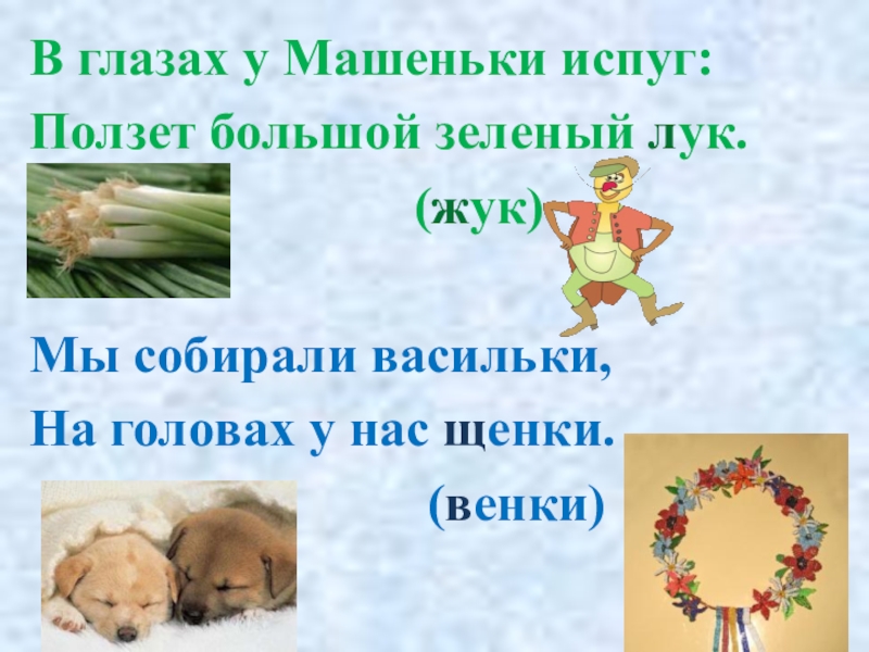 В глазах у Машеньки испуг:Ползет большой зеленый лук.