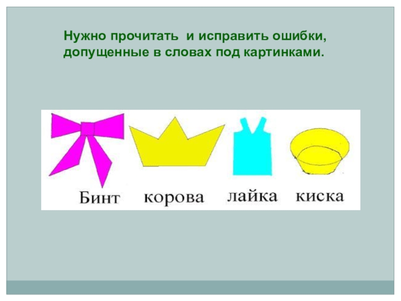 Нужно прочитать и исправить ошибки, допущенные в словах под картинками.