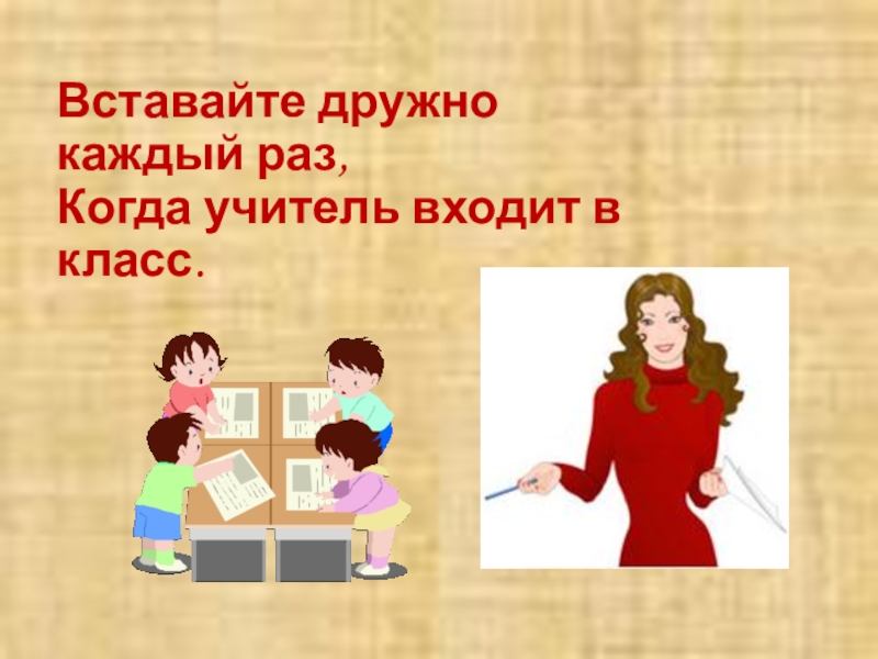 Вставайте дружно каждый раз,Когда учитель входит в класс.
