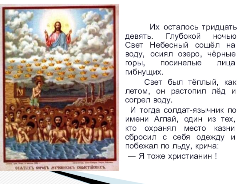 И тогда солдат-язычник по имени Аглай, один из тех, кто охранял место казни сбросил с себя одежду и побежал по льду, крича: