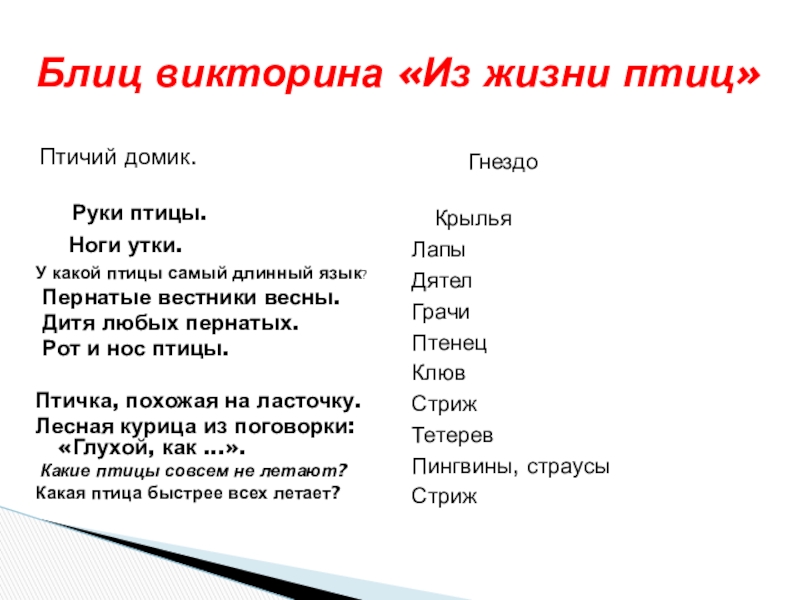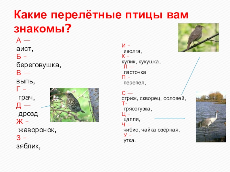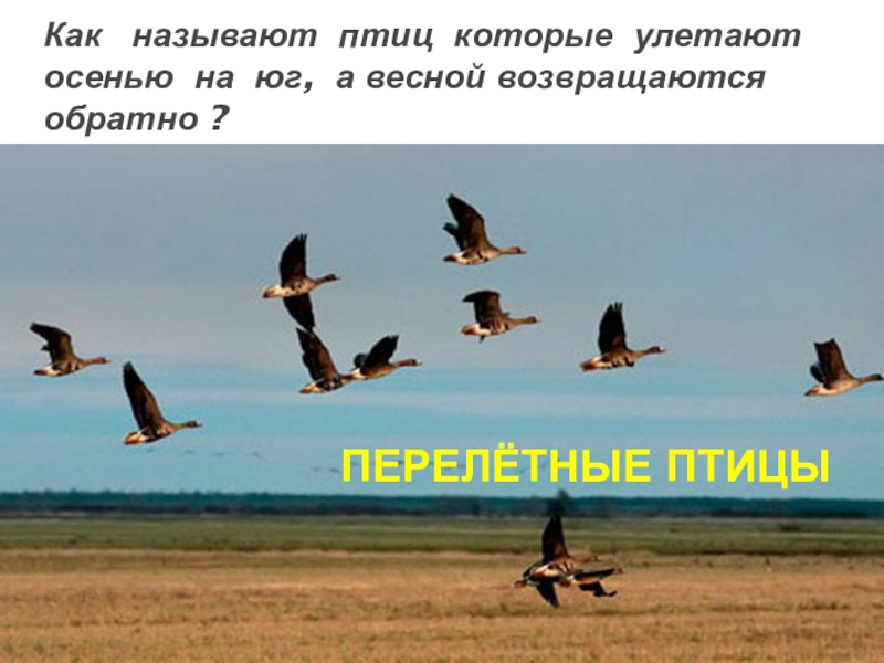 Слайд 5Как называют птиц которые улетают осенью на юг, а весной