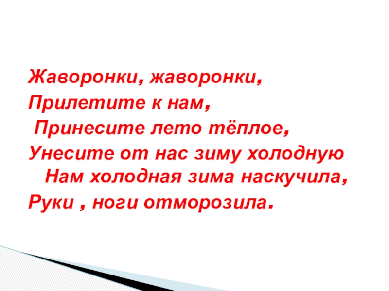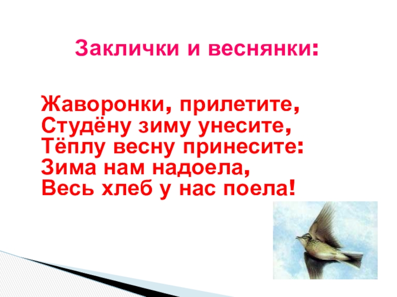 Слайд 53Возьмите своих жаворонков, будем весну зазывать и птиц к нам в