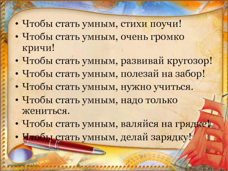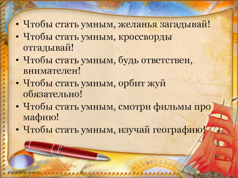 Это сайт презентаций, где можно хранить и обмениваться своими презентациями, докладами, проектами, шаблонами в формате PowerPoint с другими пользователями. Мы помогаем школьникам, студентам, учителям, преподавателям хранить и обмениваться учебными материалами.