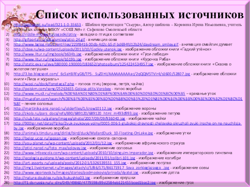 http://pedsovet.su/load/321-1-0-35653 - Шаблон презентации "Сакура», Автор шаблона – Коровина