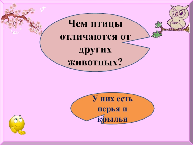 Чем птицы отличаются от других животных?У них есть перья и крылья