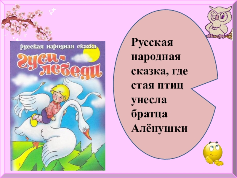 Слайд 15Русская народная сказка, где стая птиц унесла братца Алёнушки