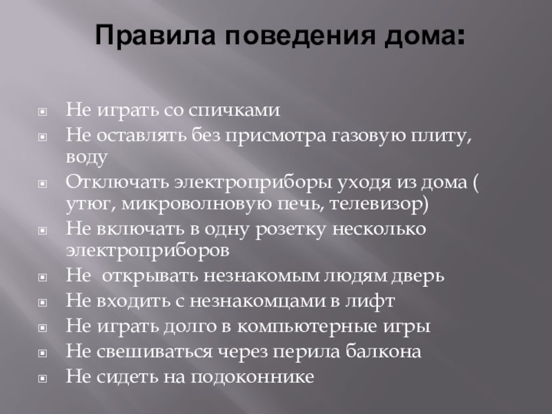 Слайд 22 Правила поведения дома: