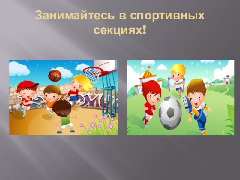 Слайд 6Занимайтесь в спортивных секциях!