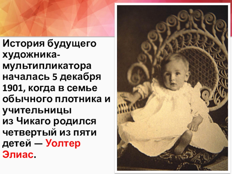 Слайд 2История будущего художника-мультипликатора началась 5 декабря 1901, когда в семье обычного