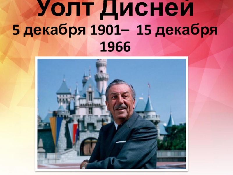 Слайд 1Уолт Дисней 5 декабря 1901– 15 декабря 1966