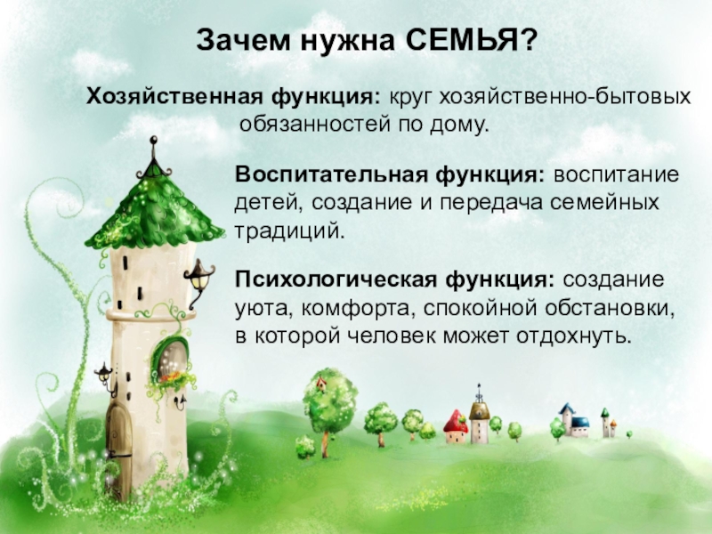 Психологическая функция: создание уюта, комфорта, спокойной обстановки, в которой человек может отдохнуть.