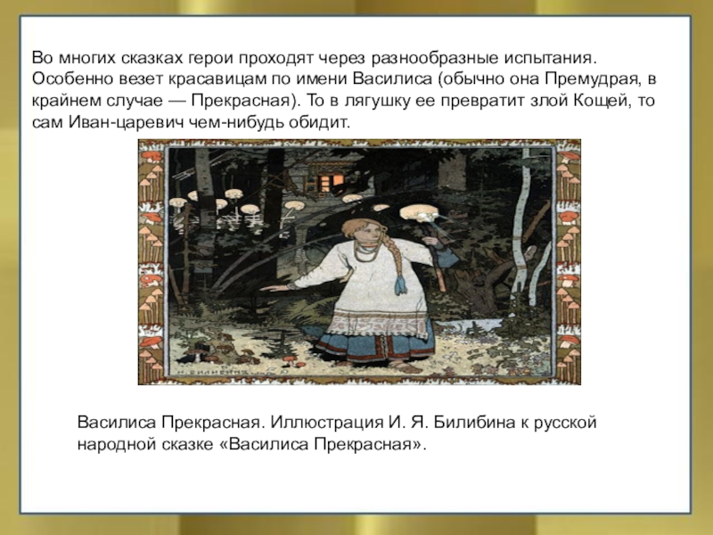 Василиса Прекрасная. Иллюстрация И. Я. Билибина к русской народной сказке «Василиса Прекрасная».