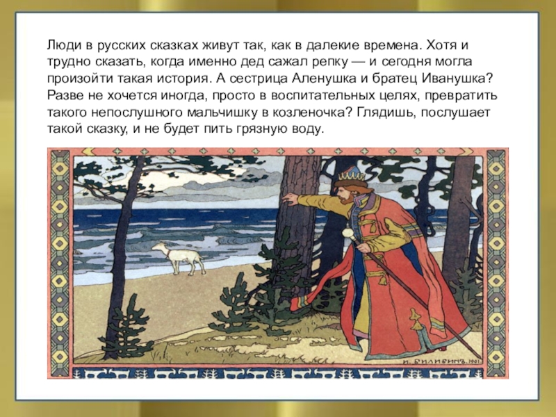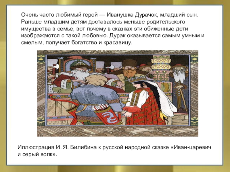 Иллюстрация И. Я. Билибина к русской народной сказке «Иван-царевич и серый волк».