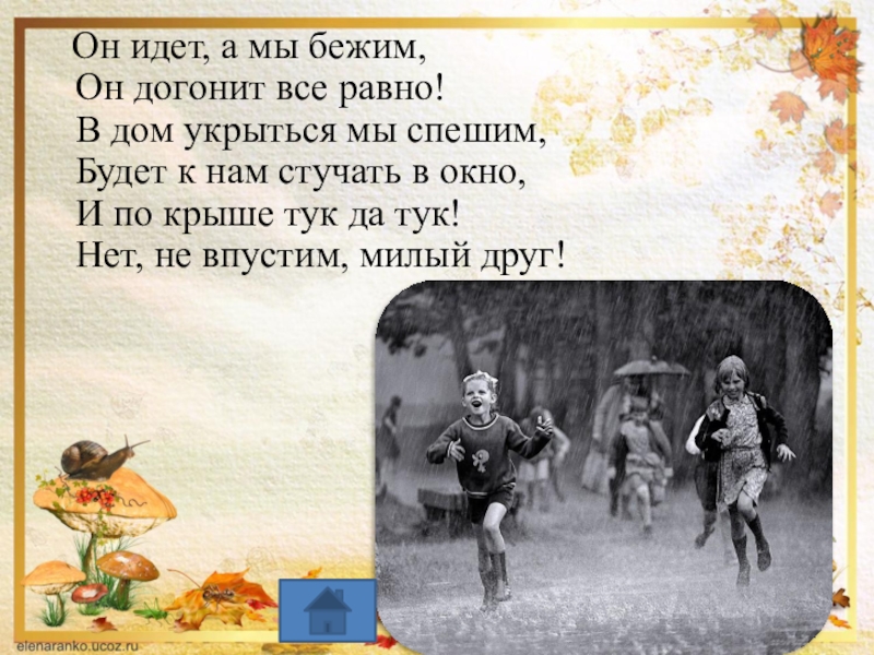 Слайд 7 Он идет, а мы бежим, Он догонит все равно! В дом