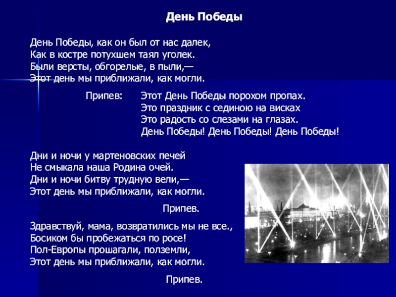 Припев: Этот День Победы порохом пропах.