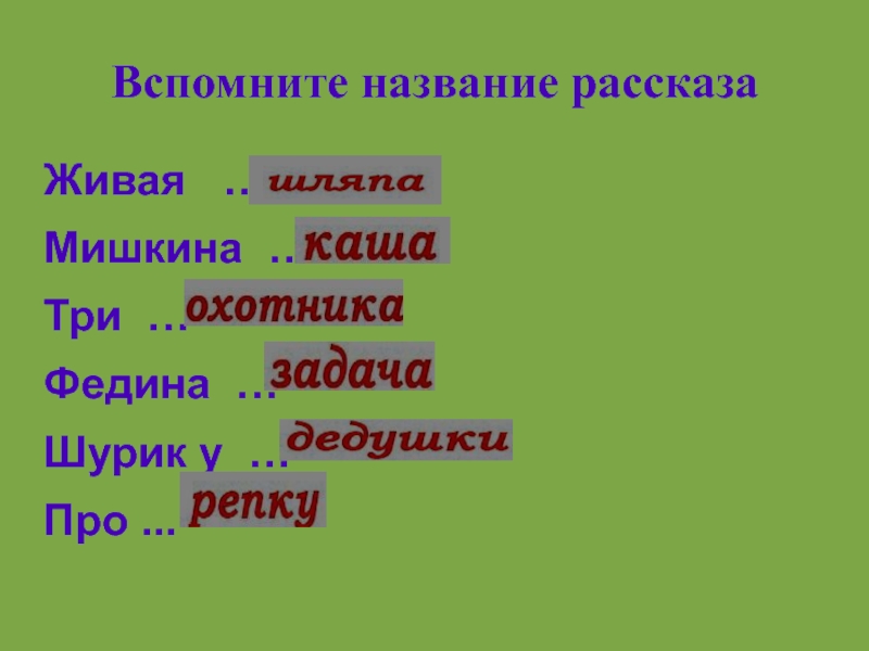 Вспомните название рассказаЖивая  …     Мишкина …    Три …