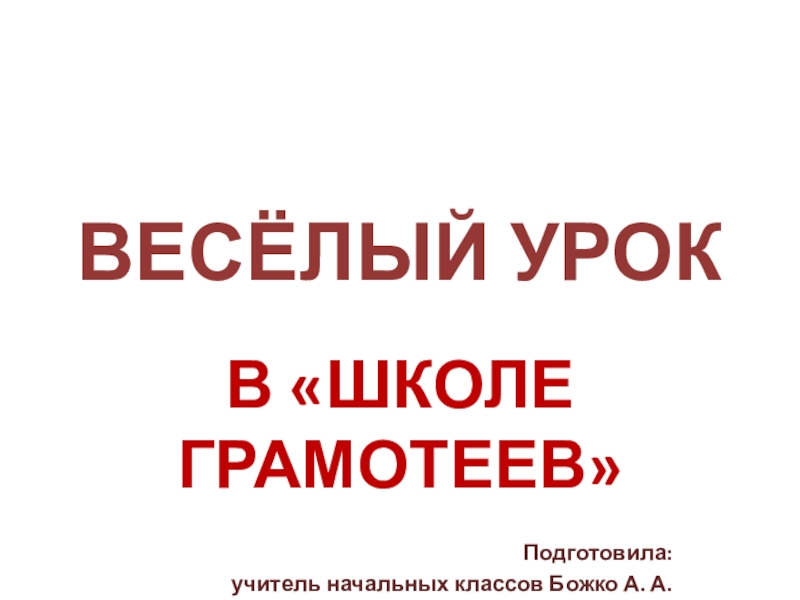 ВЕСЁЛЫЙ УРОК В «ШКОЛЕ ГРАМОТЕЕВ»Подготовила: учитель начальных классов Божко А. А.