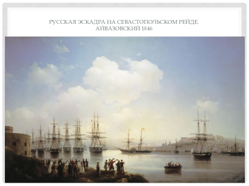 Слайд 55Русская эскадра на Севастопольском рейде. Айвазовский 1846