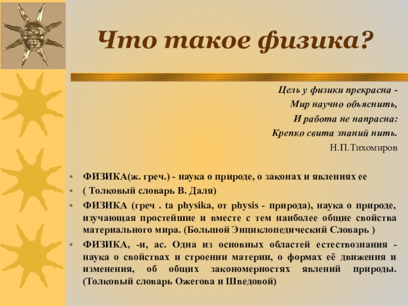 Физика – одна из многочисленных наук о природе. Если внимательно