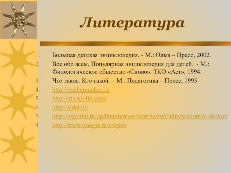 Большая детская энциклопедия. - М.: Олма – Пресс, 2002.