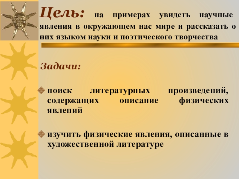 Слайд 2Цель: на примерах увидеть научные явления в окружающем нас мире и