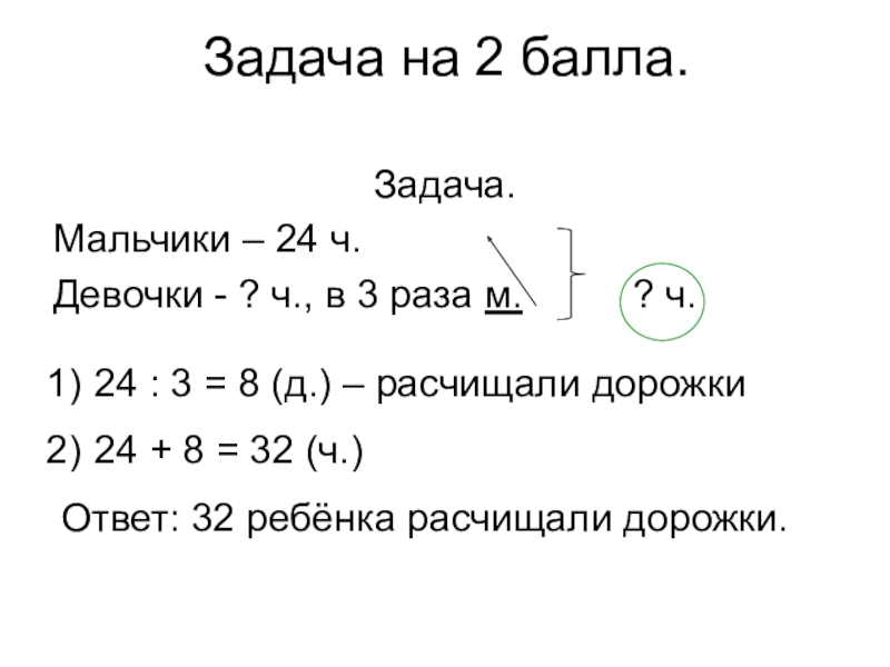 24 : 3 = 8 (д.) – расчищали дорожки