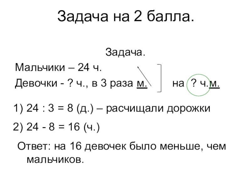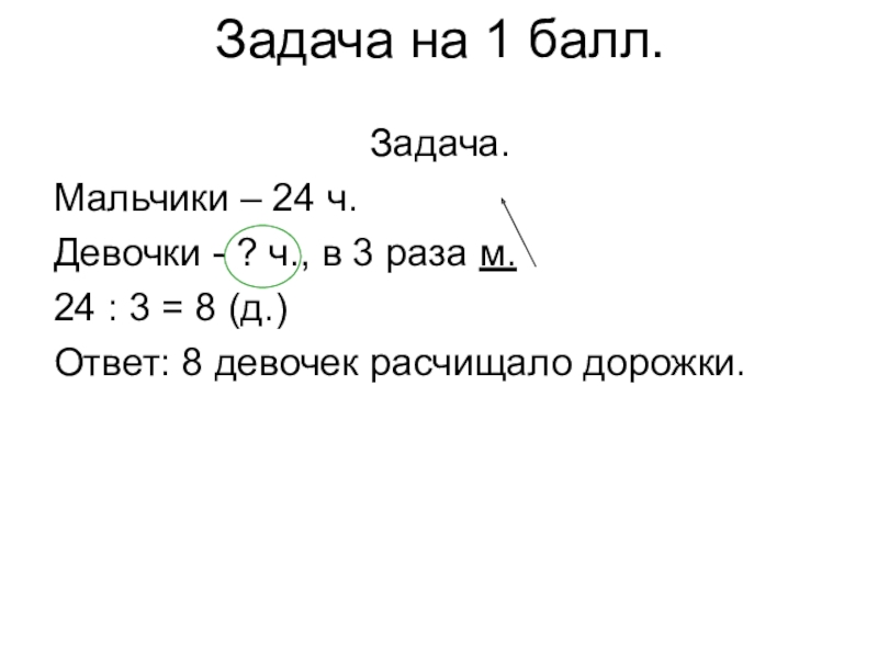 24 : 3 = 8 (д.) – расчищали дорожки