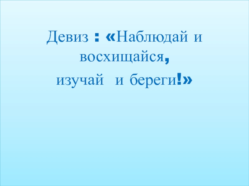 Девиз : «Наблюдай и восхищайся,изучай и береги!»