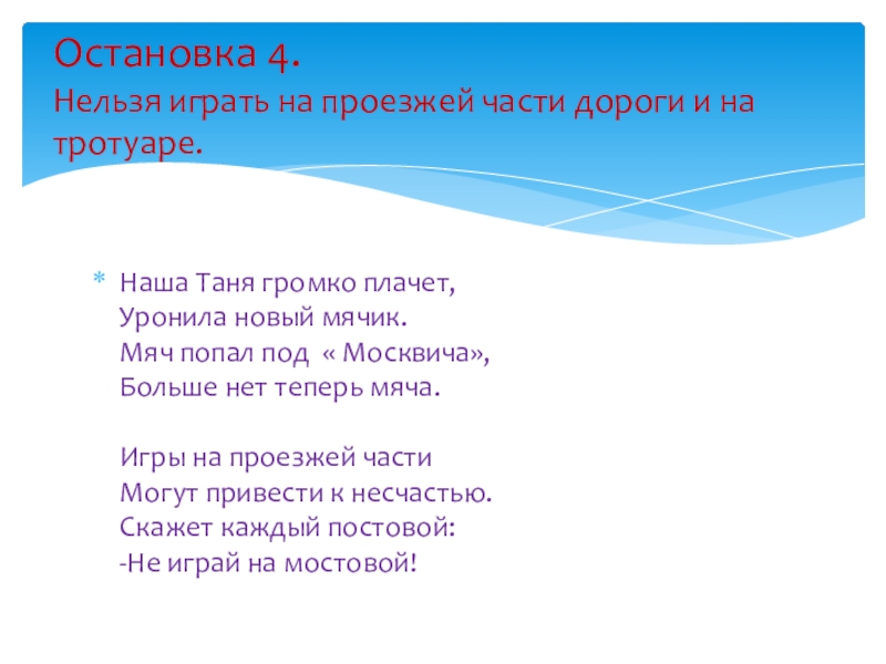 Не катайтесь в местах, где можно случайно выехать на проезжую часть