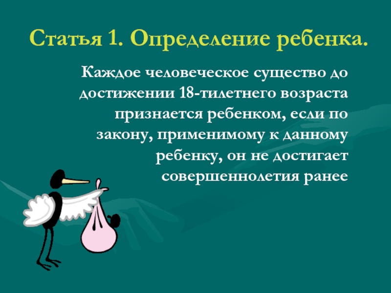 возраста признается ребенком, если по закону, применимому к данному ребенку, он не достигает совершеннолетия ранее