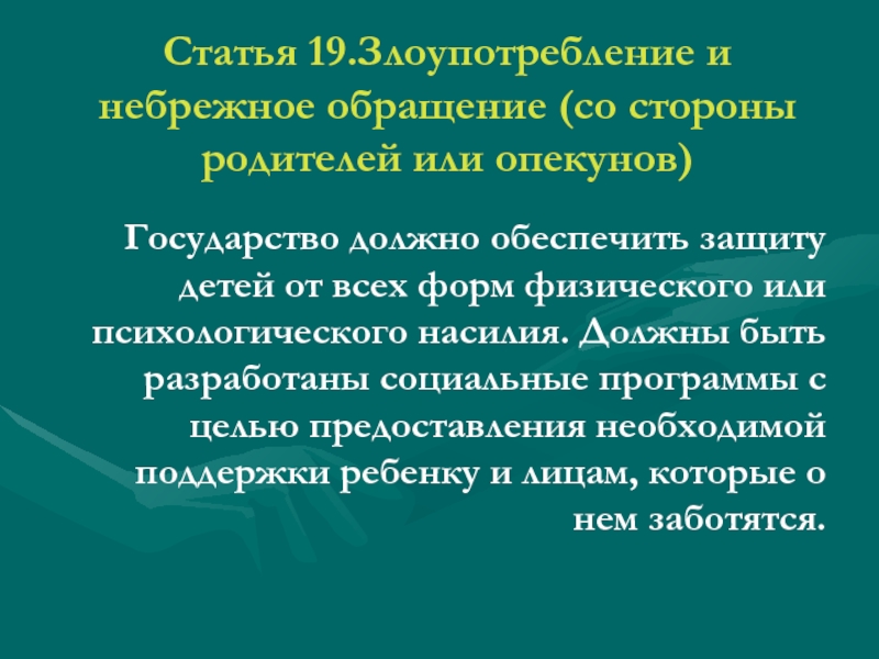 Статья 19.Злоупотребление и небрежное обращение (со стороны родителей или опекунов)