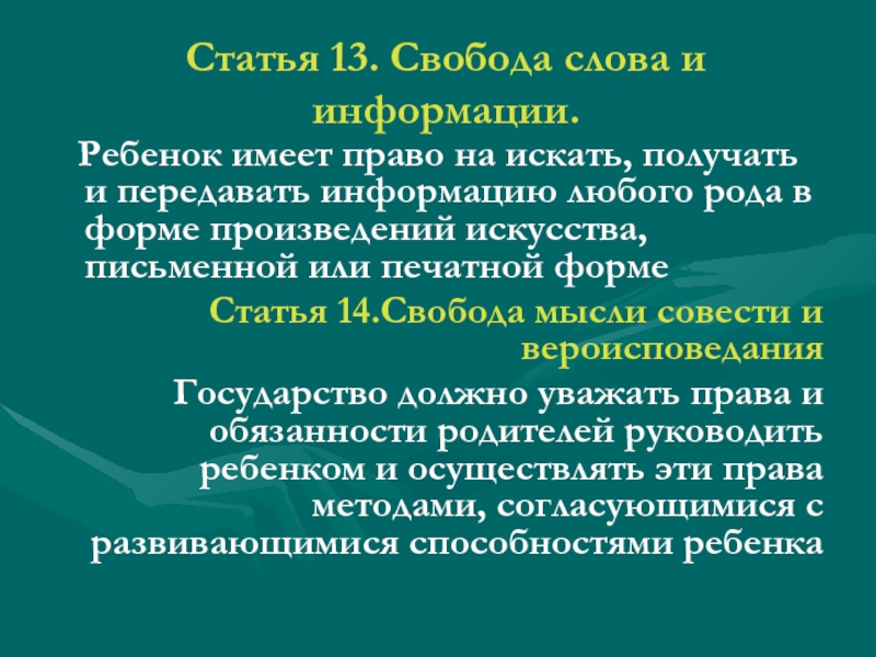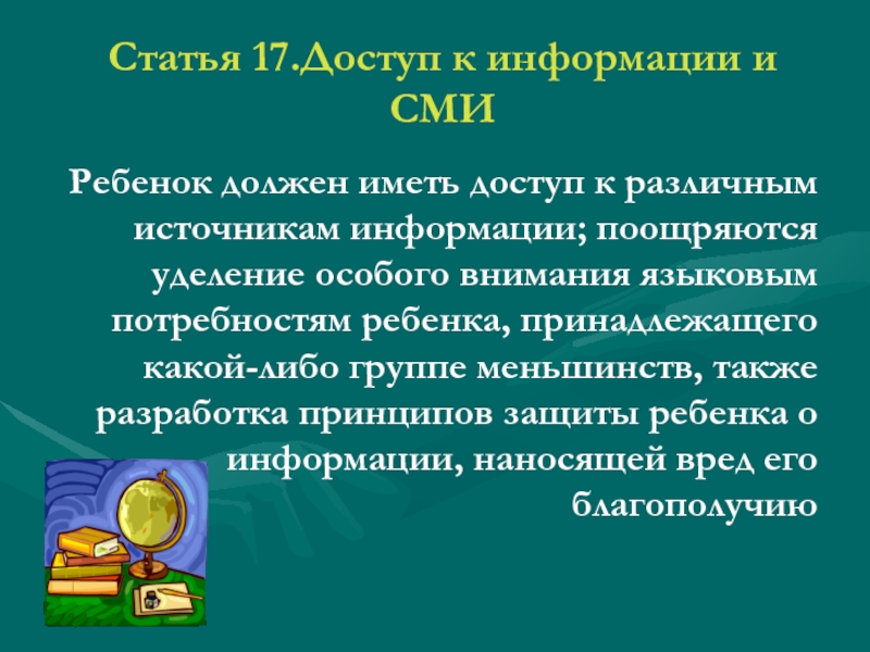 Слайд 13Статья 17.Доступ к информации и СМИ