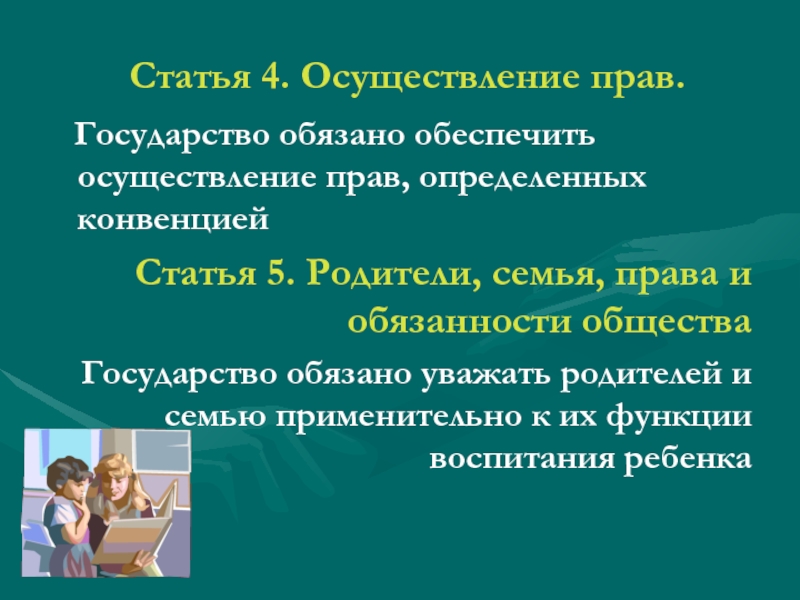 Государство обязано уважать родителей и семью применительно к их функции воспитания ребенка