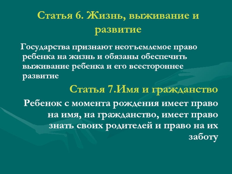 Слайд 6Статья 6. Жизнь, выживание и развитие