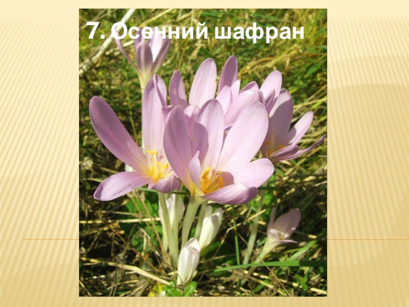 Слайд 9У осеннего шафрана много названий – безвременник осенний, вшивый цветок, луговой
