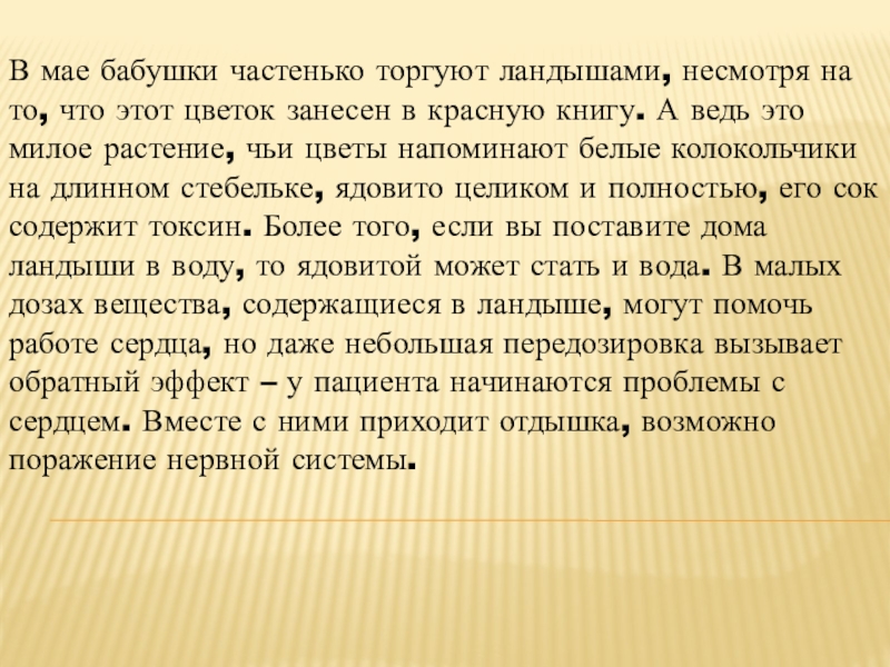 Слайд 3В мае бабушки частенько торгуют ландышами, несмотря на то, что этот