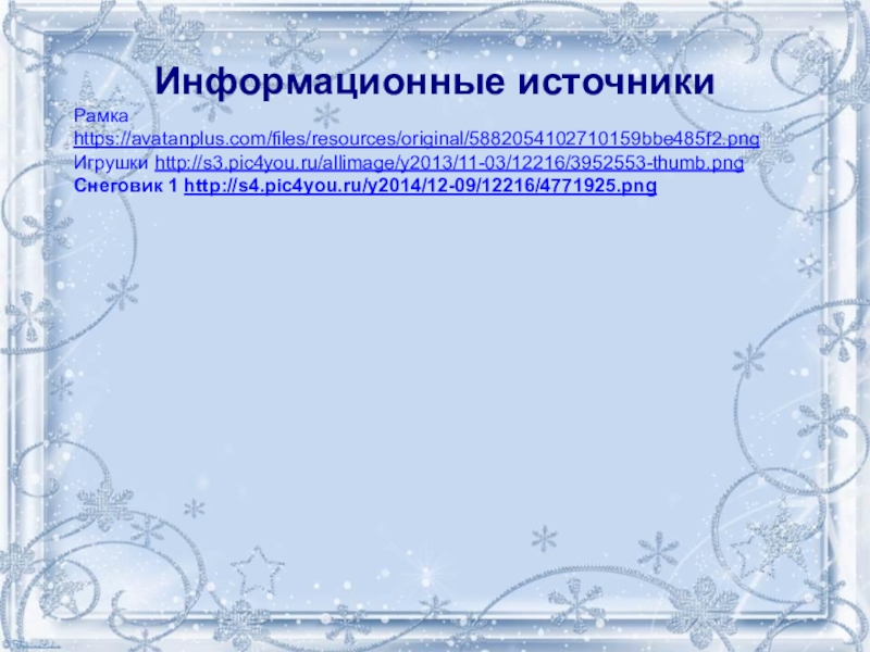 Информационные источникиРамка https://avatanplus.com/files/resources/original/5882054102710159bbe485f2.pngИгрушки http://s3.pic4you.ru/allimage/y2013/11-03/12216/3952553-thumb.pngСнеговик 1 http://s4.pic4you.ru/y2014/12-09/12216/4771925.png