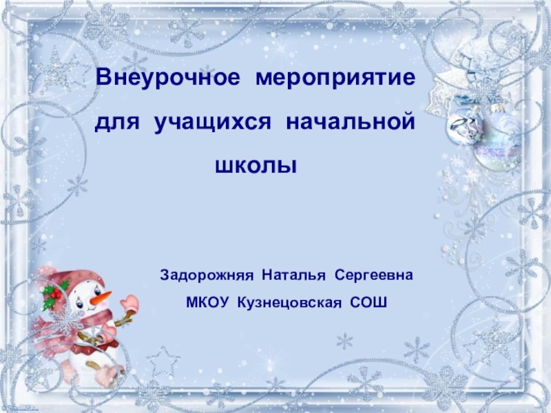 Внеурочное мероприятиедля учащихся начальной школы Задорожняя Наталья Сергеевна МКОУ Кузнецовская СОШ