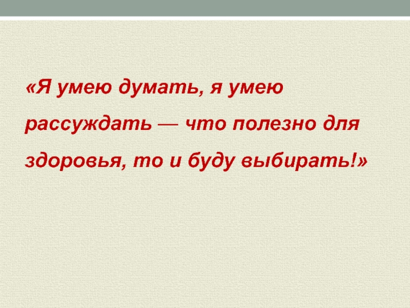 Слайд 7«Я умею думать, я умею рассуждать — что полезно для здоровья,